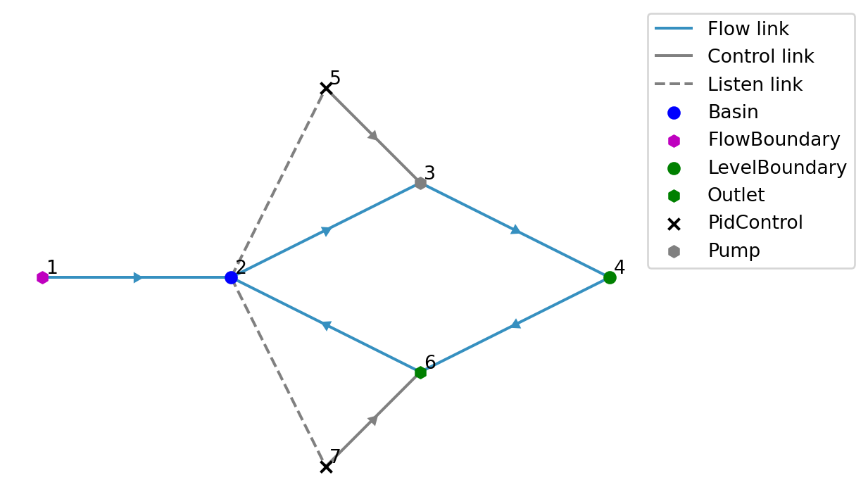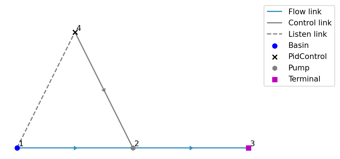 Set up a basic model with a PID controlled pump controlling a basin with abundant inflow.