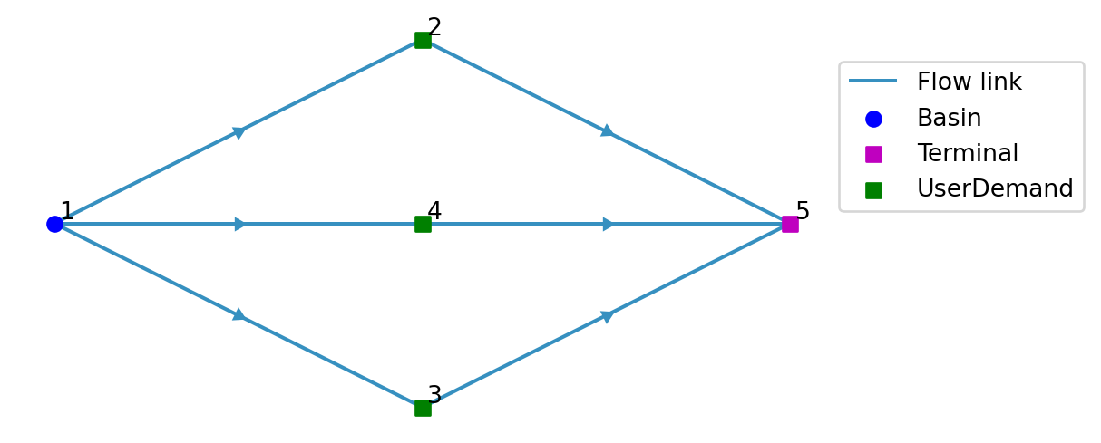 Small model with a FlowDemand for a node with a max flow rate.